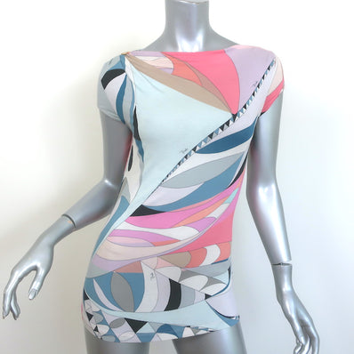 Emilio Pucci Zip-Shoulder Top Multicolor Printed Stretch Jersey Size US 6