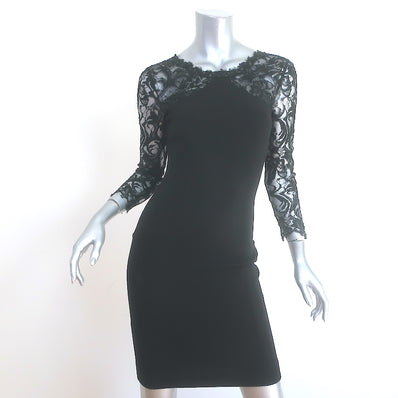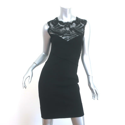 Emilio Pucci Lace-Yoke Sheath Dress Black Stretch Jersey Size 42