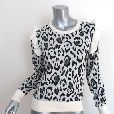 Rachel Zoe Leopard Ruffle Sweater Heidi Cream Cotton-Cashmere Size Ext...