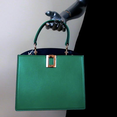 Roger Vivier So Vivier Mini Bag Green & Navy Leather Crossbody Tote NEW