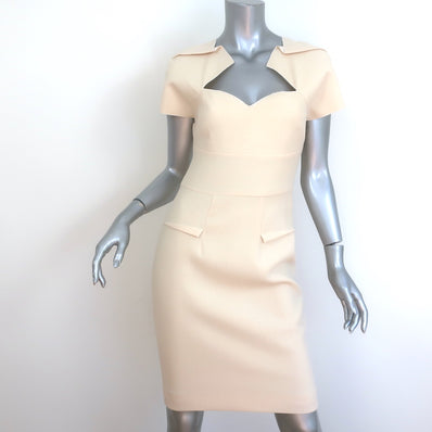 Roland Mouret Myrtha Folded Sheath Dress Ivory Wool Crepe Size US 8 NEW