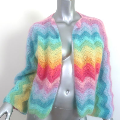 Rose Carmine Pastel Wave Cardigan Multicolor Mohair-Blend One Size