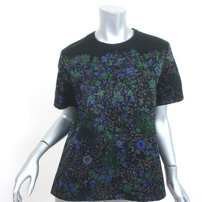 Sacai Pleated-Back Short Sleeve Top Black Floral Print Cotton & George...