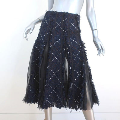 Sacai Plaid Tweed Midi Skirt Navy Cotton-Blend Size 1