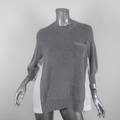 Sacai Shirt-Back Sweater Gray Ribbed Knit & White Pleated Cotton Size ...