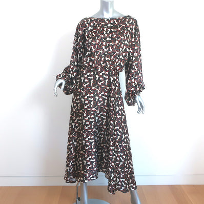 Saloni Kim-B Blouson Sleeve Midi Dress Black Daybreak Print Silk Size ...