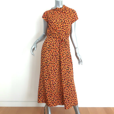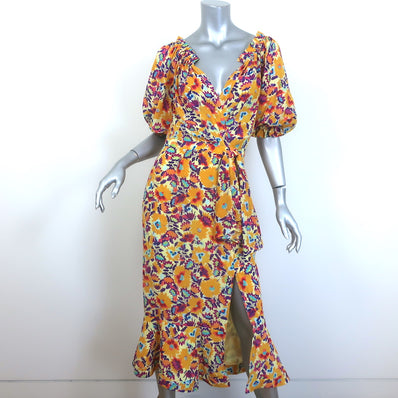 Saloni Demi Twist-Front Midi Dress Yellow Floral Print Silk Size US 6