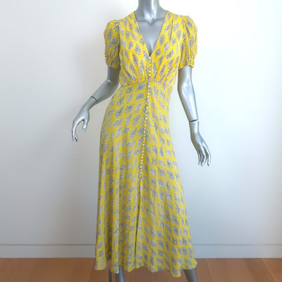 Saloni Short Sleeve Midi Dress Lea Yellow Printed Silk Size US 2