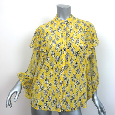 Saloni Ruffle Top Chloe Yellow Printed Silk Chiffon Size 4 Dolman Slee...
