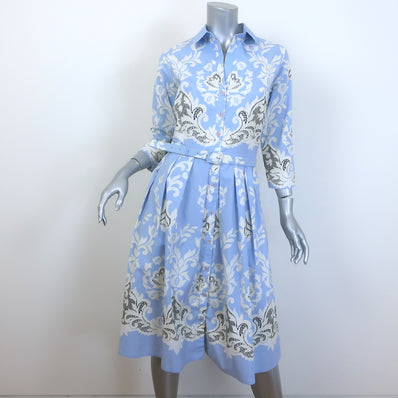 Samantha Sung Belted Shirtdress Light Blue Printed Stretch Cotton Size 8