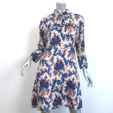 Sandro High Neck Mini Dress Utopique Multicolor Printed Silk Twill Siz...