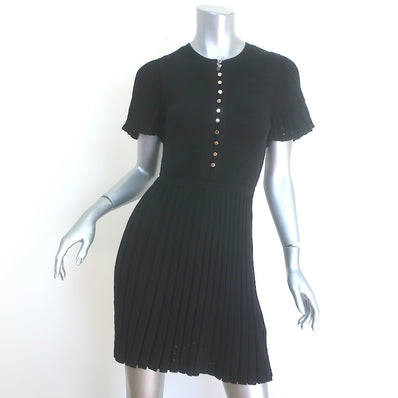 Sandro Claudine Pleated Pointelle Knit Mini Dress Black Size 34 NEW