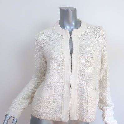 Sandro Tweed Sweater Jacket Ivory Wool-Blend Size 1