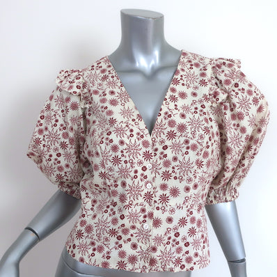 Sandro Puff Sleeve Top Miranda Cream/Red Sun Print Size 2 Button-Up Bl...