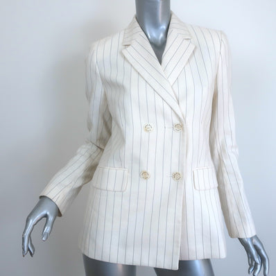 Sandro Pinstripe Blazer Cream Cotton-Blend Size 36 Double Breasted Jacket