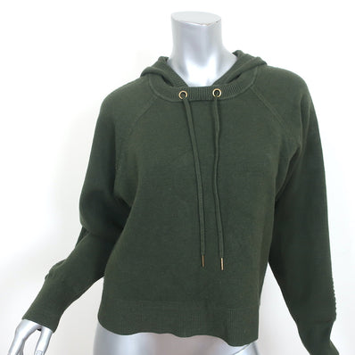 Sandro Cropped Hoodie Keira Olive Cashmere-Blend Size 2 Pullover Sweater