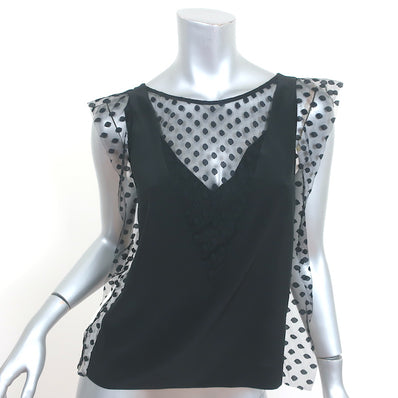 Sandro Colorblock Blouse Black Polka Dot Mesh & Silk Size 1 Sleeveless...