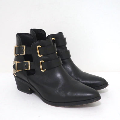 Sandro Double Buckle Ankle Boots Black Leather Size 37 Pointed Toe Boo...