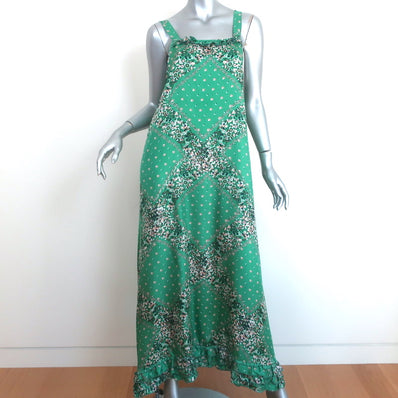 Scanlan Theodore Maxi Dress Green Paisley Bandana Print Silk Twill Siz...