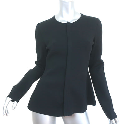 Scanlan Theodore Curved Hem Zip-Up Jacket Black Crepe Knit Size Medium