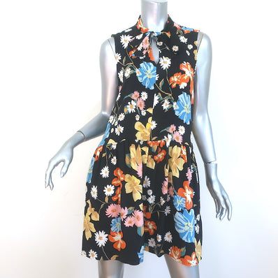 SEA Tie-Neck Sleeveless Mini Dress Black Floral Print Stretch Silk Size 0