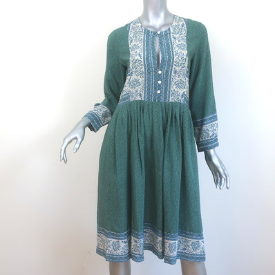 SEA Sabine Popover Dress Green Floral Print Silk Size 0 NEW