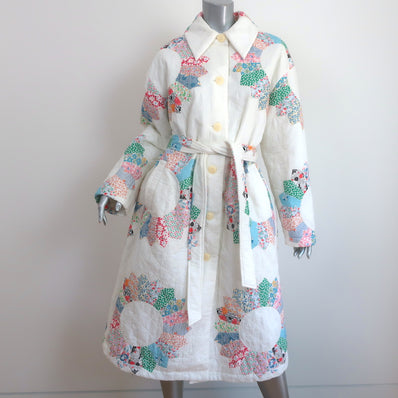 SEA Linden Quilted Patchwork Coat White/Multi Cotton Size Small Belted...