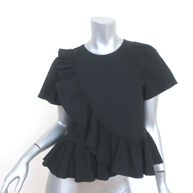 SEA Ruffle Top Black Linen-Blend Size 2 Short Sleeve Blouse