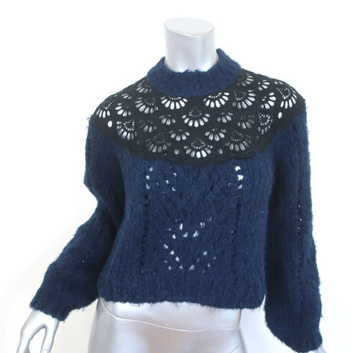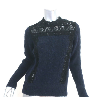 SEA Lace-Inset Sweater Navy Alpaca-Blend Cable Knit Size Small