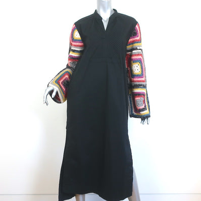 SEA New York Crochet-Sleeve Midi Dress Black Stretch Cotton Size Small...