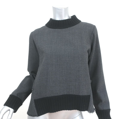 SEA Ruffled-Back Long Sleeve Top Gray Prince Of Wales Check Size Small