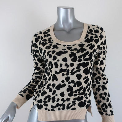 SEA Sweater Cream/Black Leopard Cotton Knit Size Extra Small Scoop Nec...