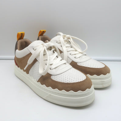 See by Chloe Lauren Low Top Sneakers White Leather & Brown Suede Size 39