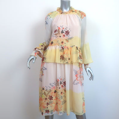 See By Chloe Tiered Long Sleeve Dress Multi Floral Print Georgette Siz...