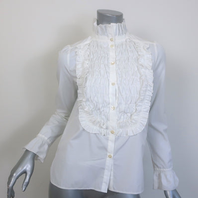 See by Chloe Smocked Tuxedo Shirt White Cotton Size 34 Long Sleeve Top...