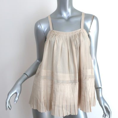 See by Chloe Pleated Swing Tank Top Beige Pinstripe Cotton-Silk Size US 2