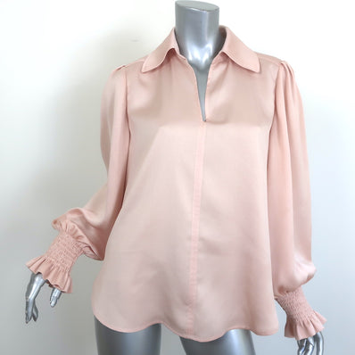 See By Chloe Blouson-Sleeve Collared Blouse Smoky Pink Satin Twill Siz...