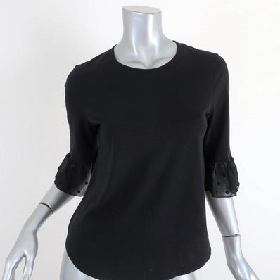 See by Chloe Bell Sleeve Tee Black Cotton & Polka Dot Chiffon Size Ext...
