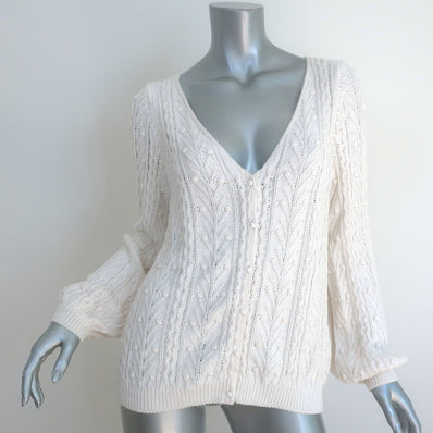 Sezane Beryl Cardigan Cream Cotton Cable Knit Size Medium V-Neck Sweater