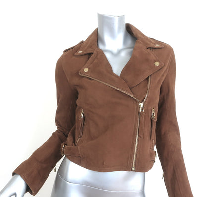 Sezane Zig Biker Jacket Camel Suede Size 36