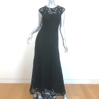 Shoshanna Midnight Guipure Lace Gown Black Size 2 Cap Sleeve Maxi Dress