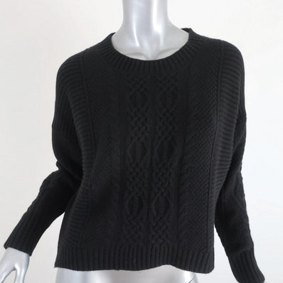 Skull Cashmere Sweater Black Ribbed & Cable Knit Wool-Cashmere Size Small
