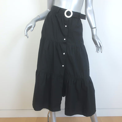 Solid & Striped Belted Tiered Midi Skirt Black Cotton Size Extra Small