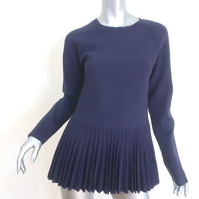 Sportmax Pleated Peplum Sweater Navy Stretch Knit Size Medium