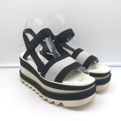 Stella McCartney Elyse Striped Platform Slingback Sandals Black & Whit...