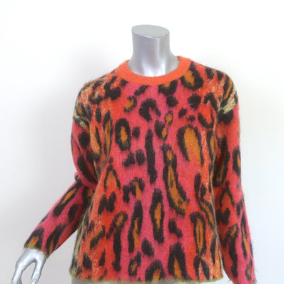 Stella McCartney Leopard Print Sweater Neon Multicolor Brushed Mohair ...