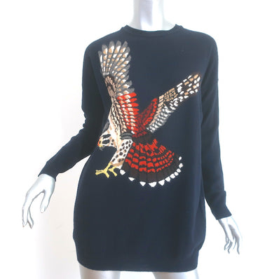 Stella McCartney Eagle Jacquard Crewneck Sweater Navy Virgin Wool Size 36