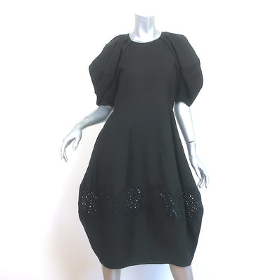 Stella McCartney Broderie Anglaise Puff Sleeve Dress Black Linen-Blend...