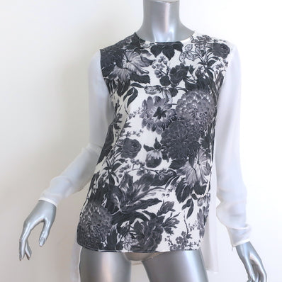 Stella McCartney Floral-Front Blouse White/Gray Silk Size 38 Long Slee...