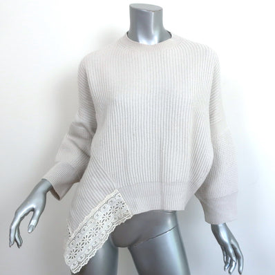 Stella McCartney Cardigan Cream Lace-Trim Cashmere-Wool Size 36 V-Neck...